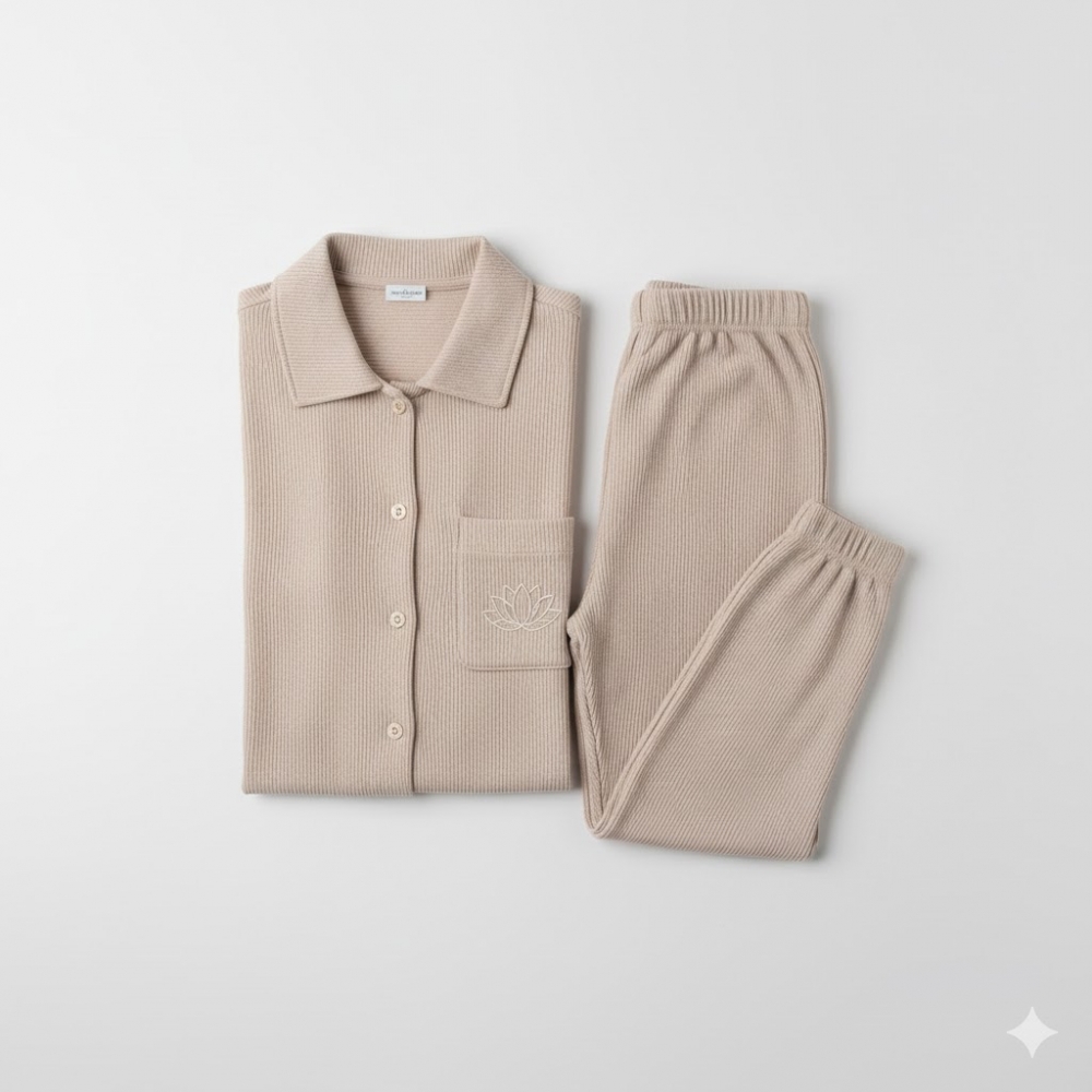 Pysjen har en avslappet passform med ribb og god stretch, og er ment for rolige morgener, kvelder og hvile hjemme.